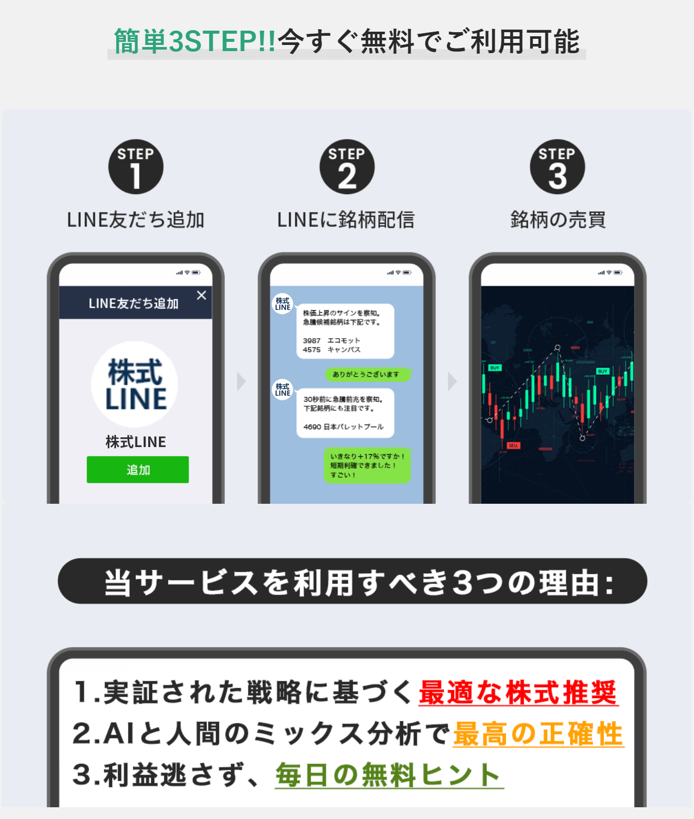 抽出してくれる銘柄の情報量が人間とは段違いなので、精度も高く期待値も十分に見込めます。